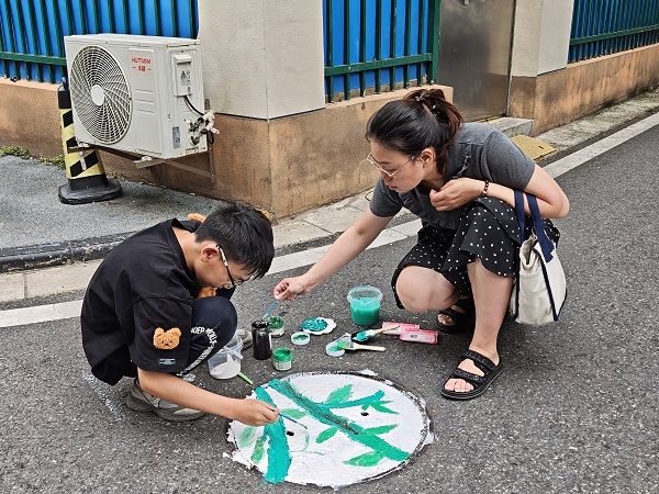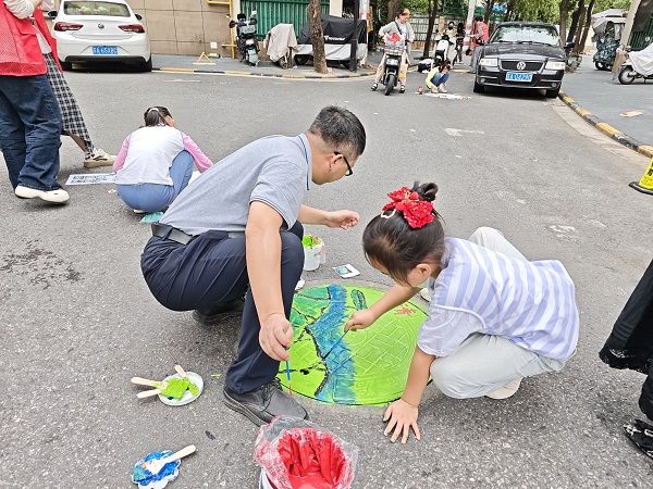 国泰民安社区开展“童笔绘家风,井盖展新颜”创意涂鸦活动