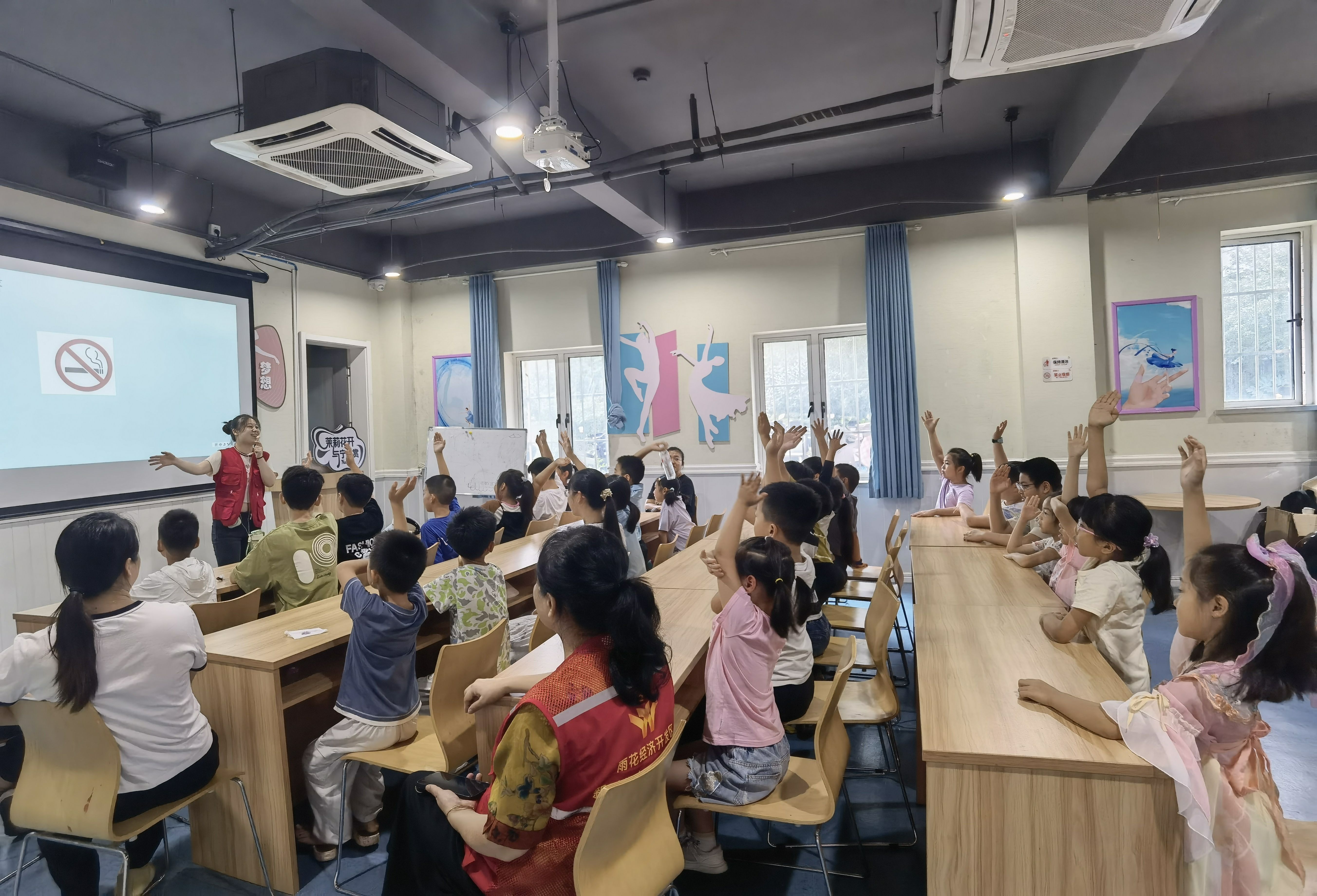 活动聚焦儿童认知特点,打造“沉浸式学习+具象化实践”的教育模式。在安全知识科普环节,社工以朗朗上口的交通安全儿歌为切入点,随后通过动态PPT与视频,系统讲解步行安全规范、乘车防护要点、车辆盲区风险等核心内容,对红绿灯、斑马线、禁止通行等交通标志进行可视化解读,让抽象的规则转化为可感知的生活常识。
