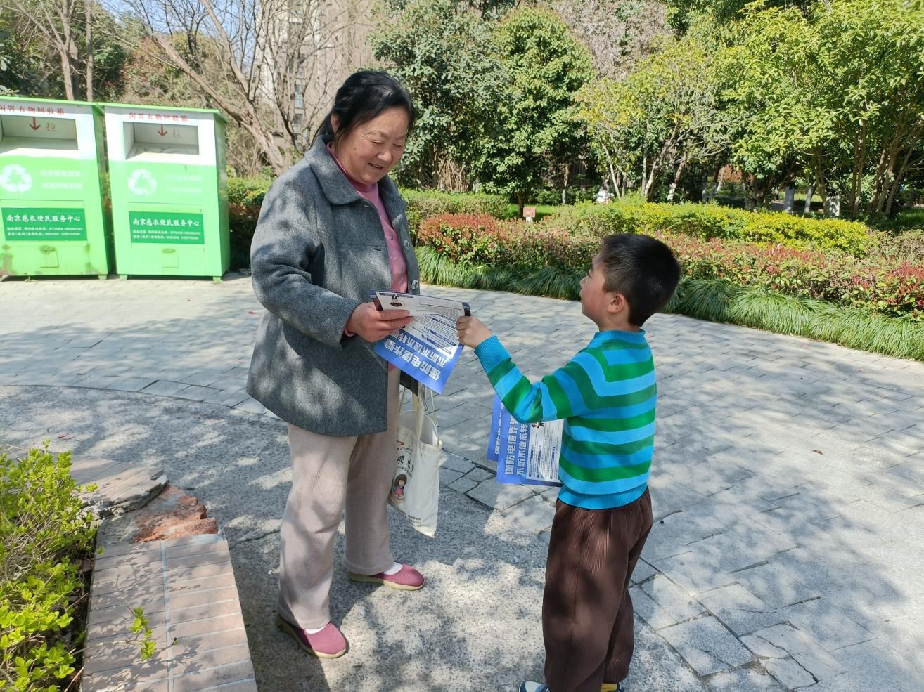 宣讲结束后,孩子们在志愿者的带领下走进了社区,开始了防诈知识的普及工作。他们手持传单,向居民们发放并耐心讲解其中的关键信息。孩子们用稚嫩却真诚的声音,向居民们传达了保持警惕、不轻信陌生人的重要性。