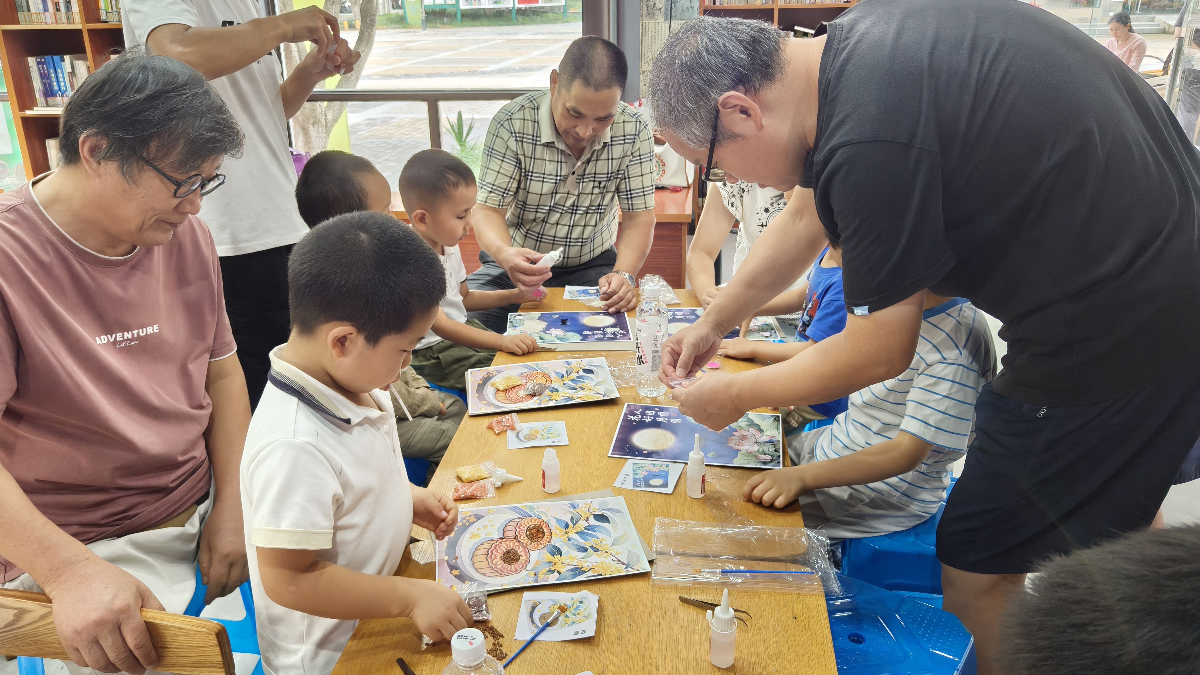 活动伊始,社区文化志愿者图文并茂地讲述了中秋拜月、赏桂、品月饼的千年习俗,生动还原国庆节天安门升旗、群众游行的历史场景。现场互动答题环节,孩子们争先恐后讲述嫦娥奔月、开国大典等故事,传统与爱国情感悄然浸润心田。文化讲座余韵未消,充满创意的五谷画制作环节点燃全场热情。玉米粒、绿豆、红豆、小米等寻常谷物,在居民手中化为“神奇的画笔”。糯白的米粒拼成皎洁明月,五彩豆子点缀出花好月圆。一幅幅寓意“山河锦绣”“月满中华”的谷物画逐渐成形,质朴材料承载着对家国团圆的美好祈愿。