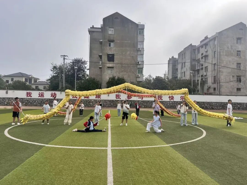 在当天的开幕式上,各代表队的飞龙金狮在操场上腾飞、跳跃,场面极为壮观。开幕式结束后,比赛正式拉开帷幕。高淳区固城街道漕塘小学的龙狮队员们身着比赛服装,手舞长龙,“八字舞龙、单膝舞龙、直躺快舞龙”衔接自如,仿佛“活”龙再现。伴随着激昂的鼓乐声,每一个动作都刚劲有力、行云流水。他们眼神专注、步伐坚定,将龙狮文化中“团结奋进、吉祥向上”的精神内涵展现得淋漓尽致。从套路编排到细节呈现,队员们凭借日复一日的刻苦训练,最终荣获龙狮项目一等奖。