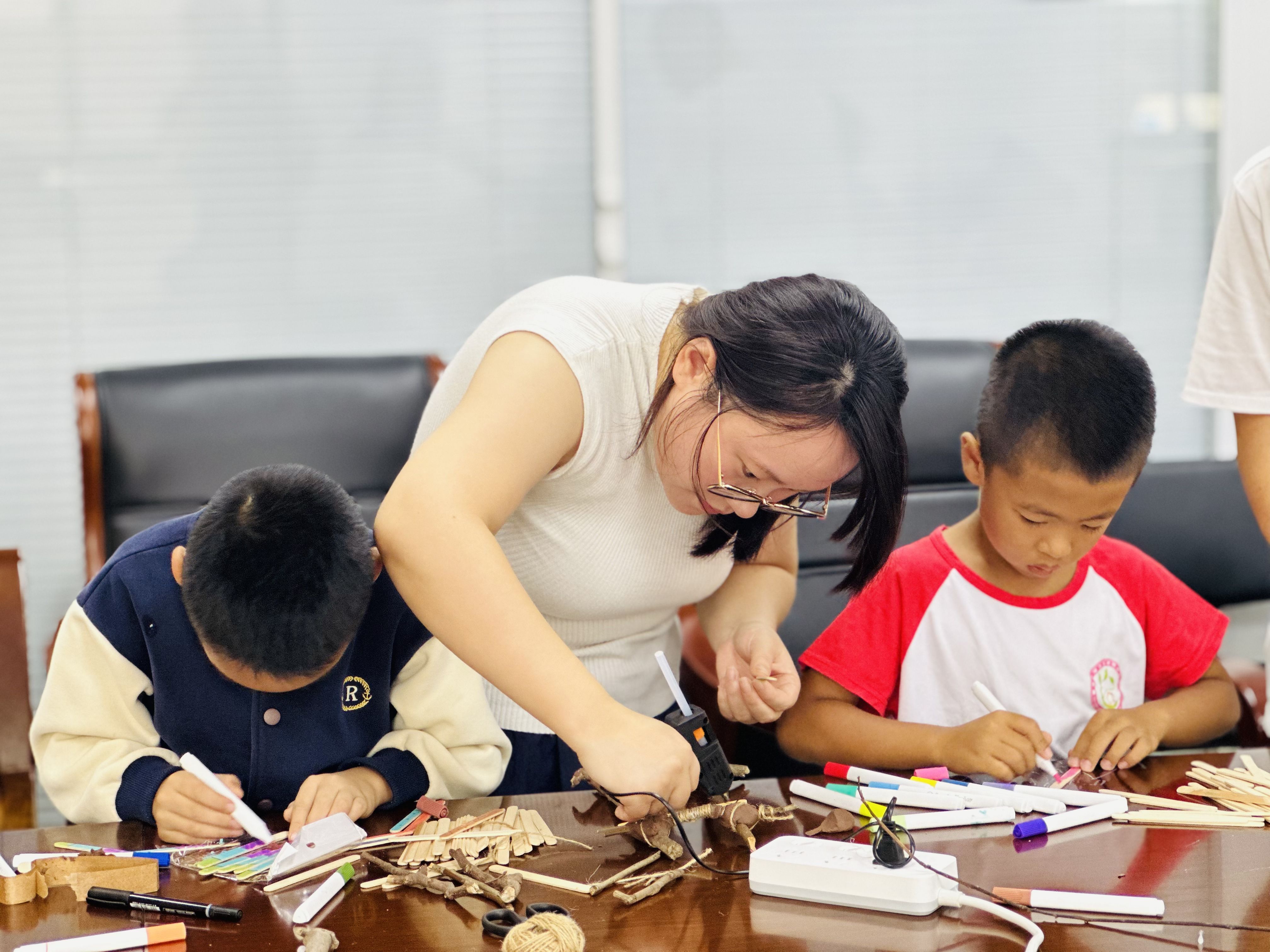 本次活动的高潮环节是“DIY环保小手工”。在志愿者和家长的协助下,孩子们纷纷化身“环保小达人”,利用废弃的树枝、雪糕棒等材料,发挥奇思妙想,动手制作属于自己的环保小作品。看着手中的“废物”华丽转身成为美丽的环保挂饰,孩子们成就感满满,深刻体会到了“变废为宝”的乐趣和意义,理解了资源循环利用的重要性。